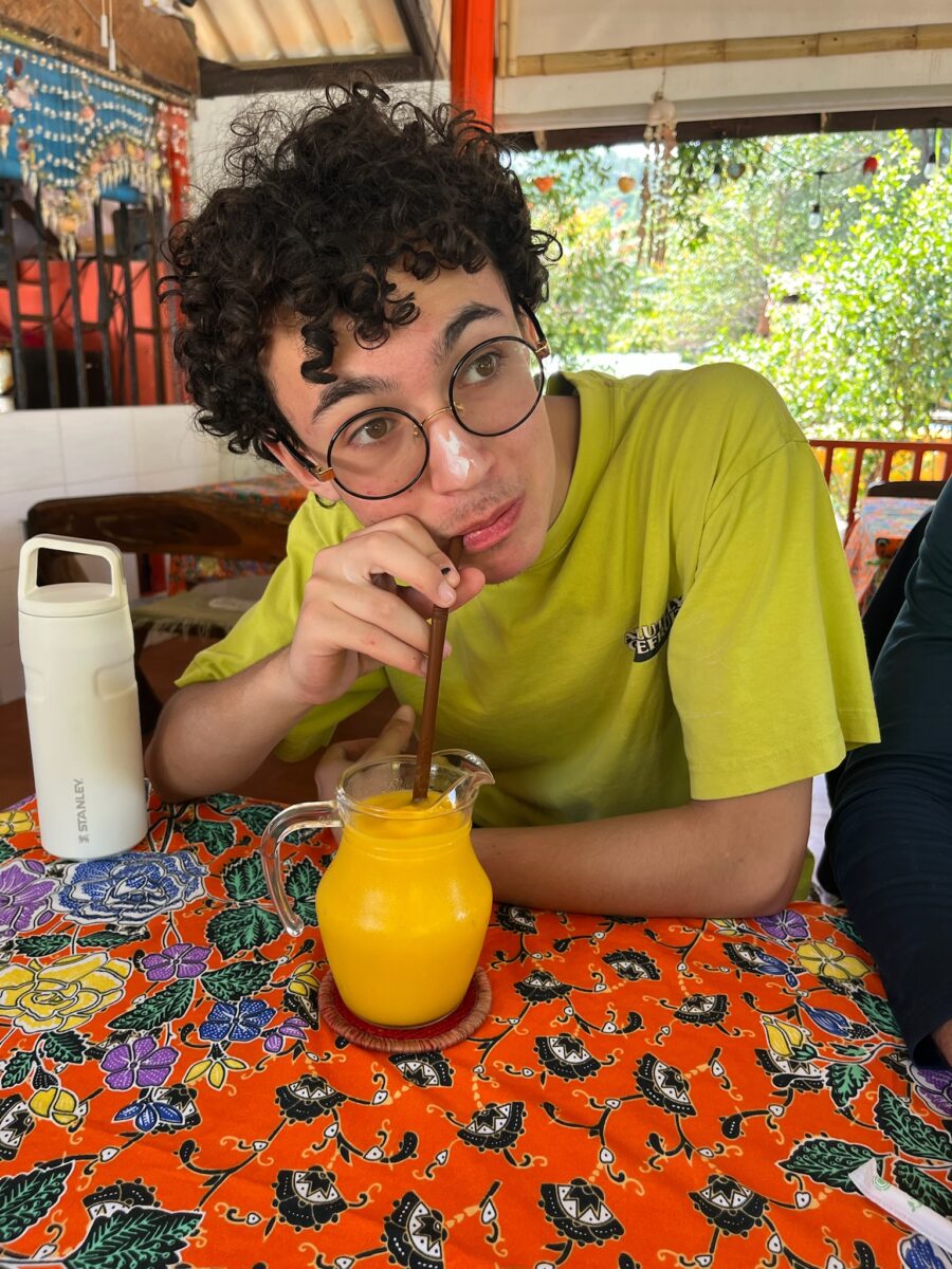 The next day we decided going by scooters might be better. We traded in our electric scooters for motorized ones – so we could go further – and we headed early to the ceramic place for a quick lesson. It was a bit brief but it was super fun and a really nice place. I am not an experienced ceramicist but their technique is different than what I had been taught before. They create a thick slab of clay on the wheel. We spin the wheel and cut a circular base. Then make thick clay snakes to build up the sides of the vase. Lastly spin the wheel again to thin out and pull up the base and walls we had already created. Afterwards we stayed and had a couple lovely drinks and I checked out and bought some of the local linens they were selling. That afternoon we decided to go to a waterfall that Morton found on the map. We took our scooters there – which was a bit of a mistake. It was a bit of a longer ride with so many potholes and so much dust! Once we arrived, it became clear we needed to take a boat which took us to the opposite of the river and a bit upstream. Crossing the river