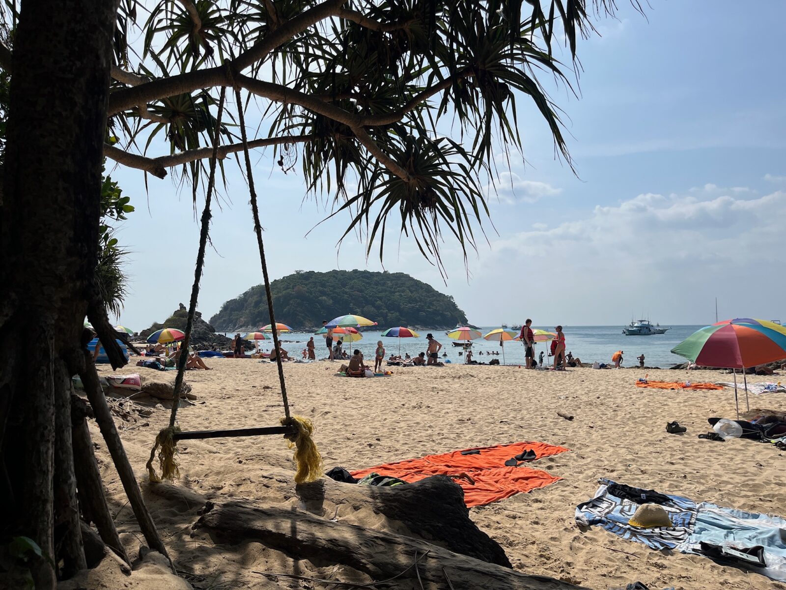 The island has a few beaches, only connected by hiking paths. The beach we were on had three hotels – at the end what looked like a failed attempt at another one. Our hotel room, although nice, at first was a little disappointing as it was the second row, so the view of the ocean was blocked – two days later we were grateful for this. We spent the first day hanging out at the pool, waiting for our room to be ready and walking along the beach, checking out the other hotels. I saw lights up the hill just up from the beach, and we hiked up and found a place to have a drink and look down at the beach. After dinner, there was a fire show on the beach by a few local guys. They seemed like just some guys playing with fire – not real serious or professional – but the show was actually pretty amazing. The next day we scheduled a boat to take us around later in the day and decided to spend the first half of the day hiking around the island. It was more hike than we expected but it was fun to see the different vibes of a couple of the beaches. Swings along different beaches we came acrossWe ended up calling the hotel to have the boat could pick us up from where we were – as hiking back seemed like it would take too long. The boat took us to a place to snorkel among the coral, another area to fish – with just a spool but no rod -and then to the main town where we climbed the hill and watched the sunset. On the way back it was pitch black and we stopped to swim with the plankton. When you moved the water the plankton lit up like sparkles. Swimming in the pitch black and then moving the water around us and being surrounded by golden sparkles was amazing – a life highlight. It was really unbelievable.
