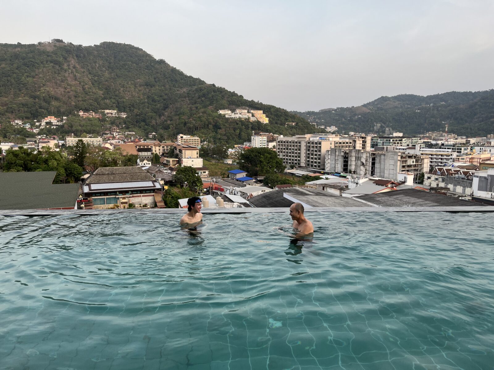 Once back at the hotel, Dan and I decided to go swimming on the rooftop deck. The view was so beautiful.