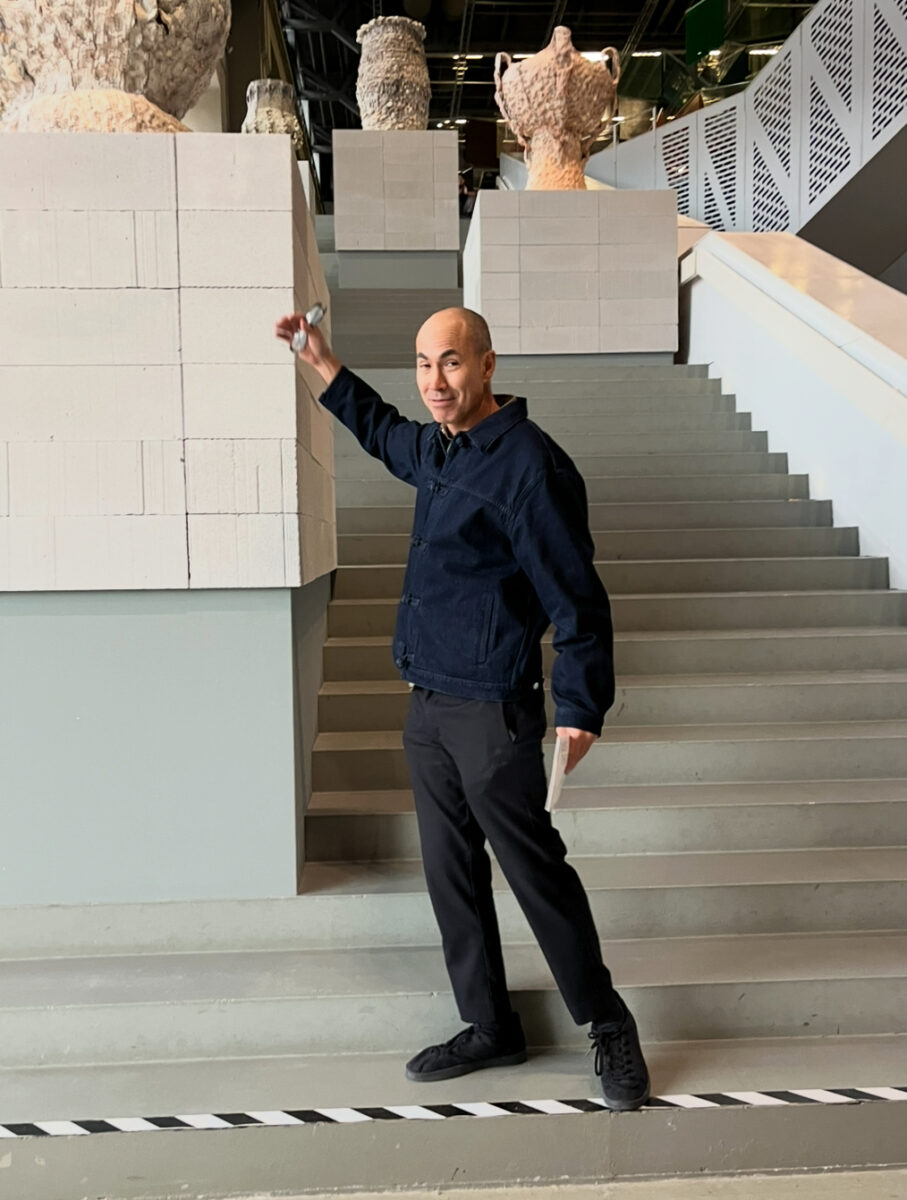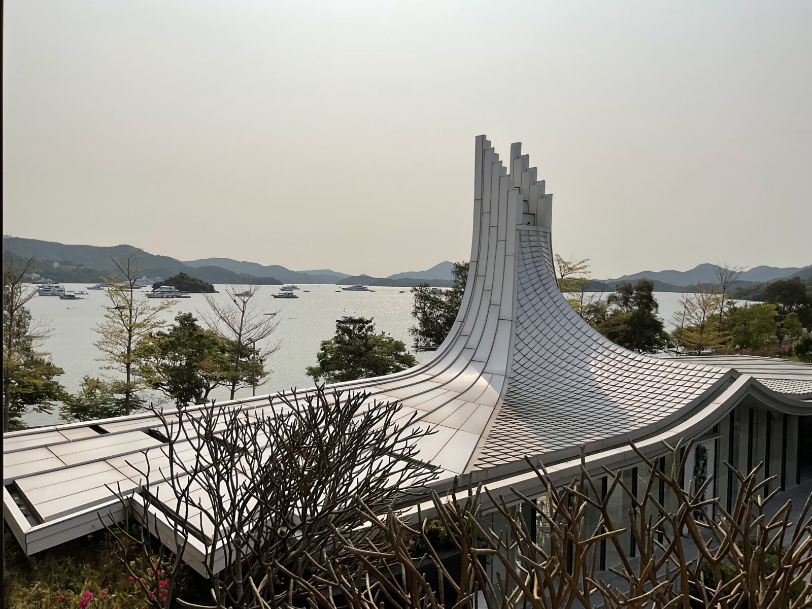 Before leaving for the summer, we headed down to see the artist James Turrell’s skyscape which is down next to the Forbidden City. It’s next to an old traditional temple. When we arrived early we found by the temple is a lovely tea house and wine bar with mats outside for visitors to recline and relax and a misting awning to keep away the intense heat. It was a lovely place to sit. we got drinks and enjoyed the serenity.