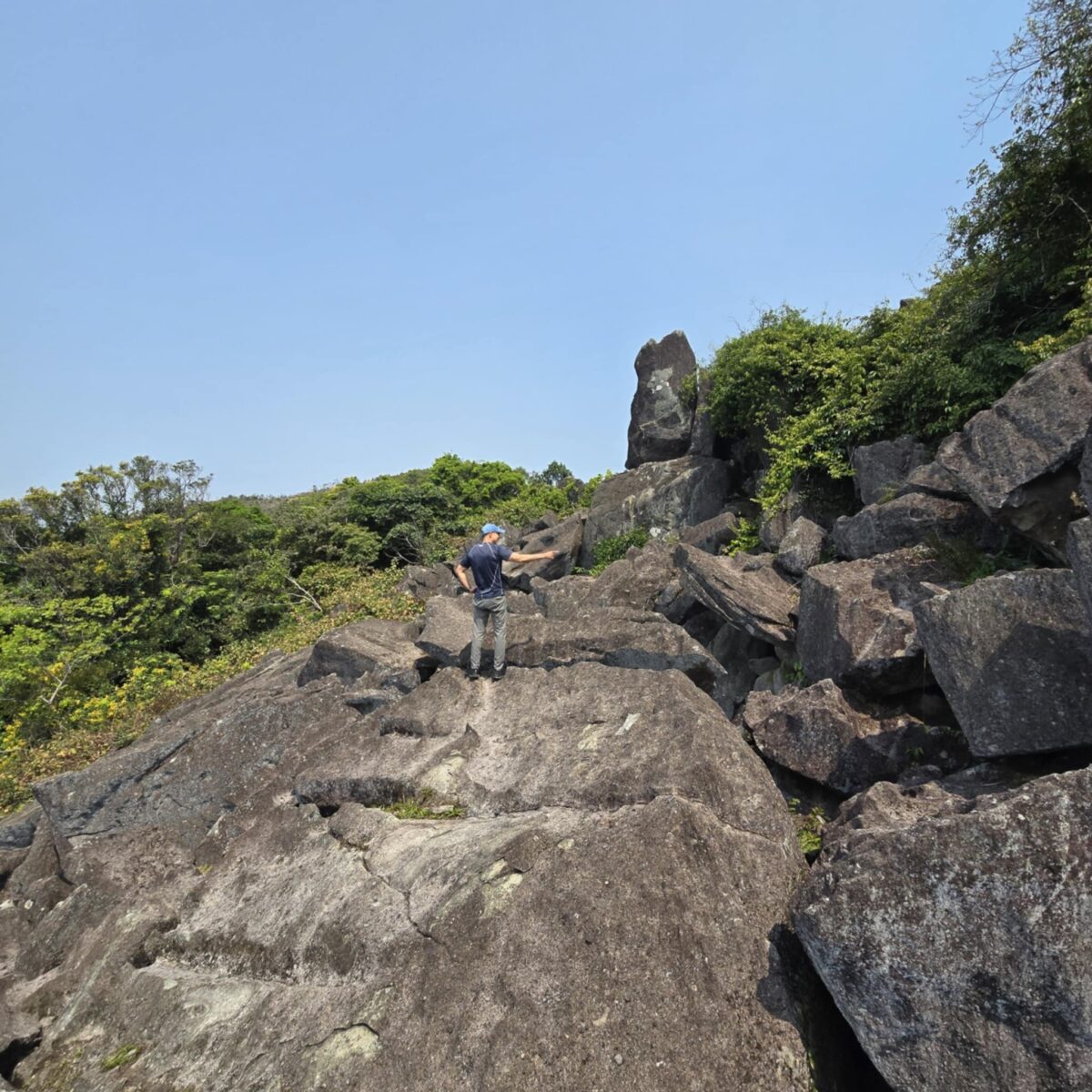 View from the top of the mountainThere are way more decks and people posing than you can see – I was mostly down before I thought to take this. Of course I made us join in!Boat we took to and from area where lookout wasMorton was thrilled for me to take his picture on the boat!