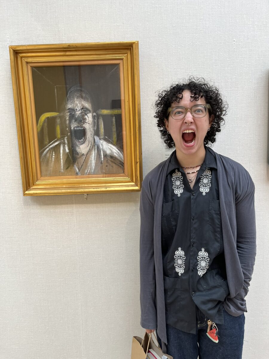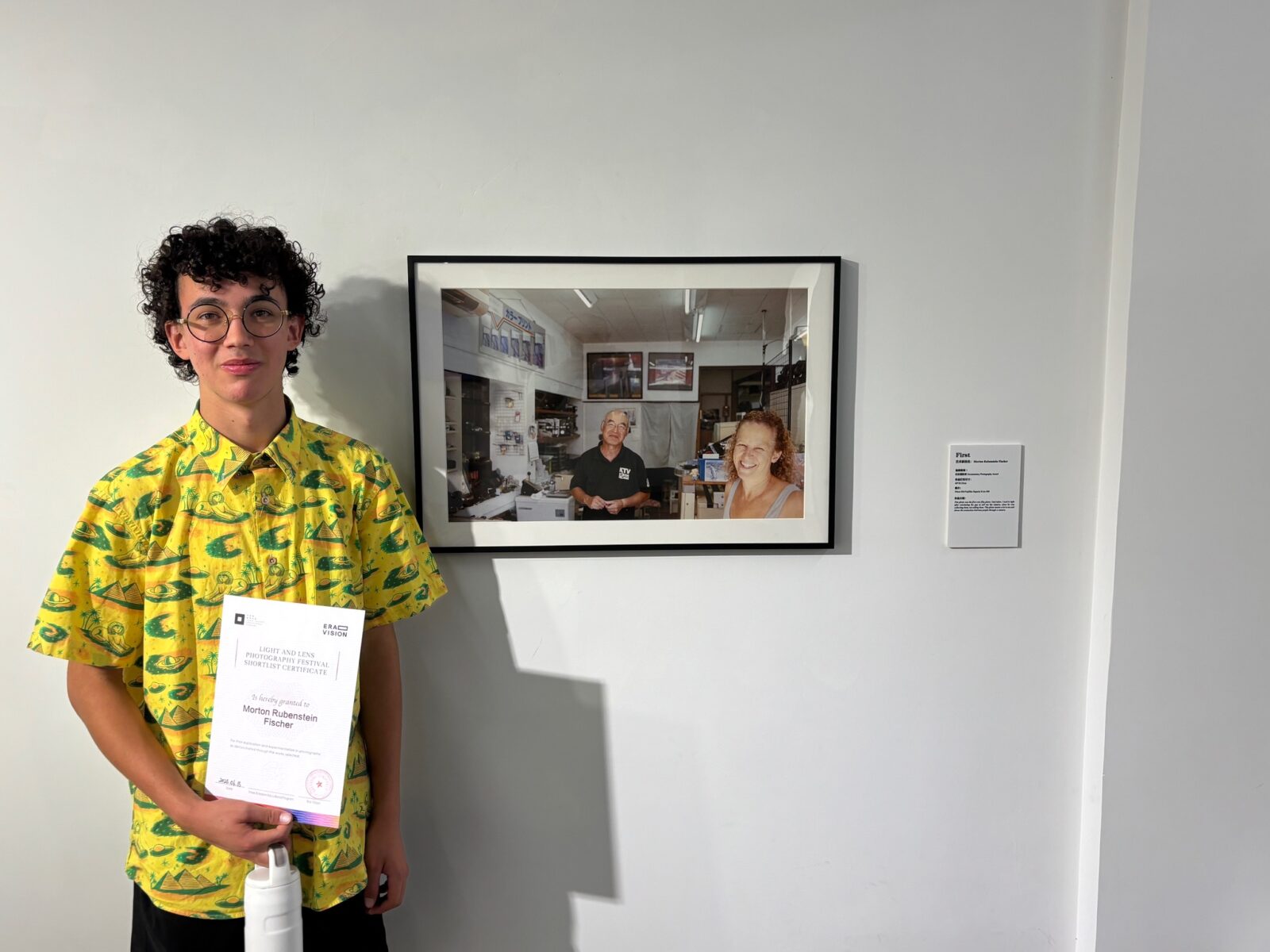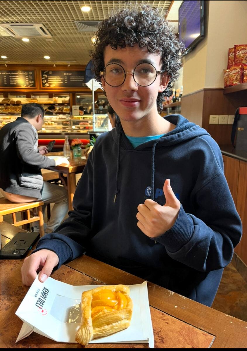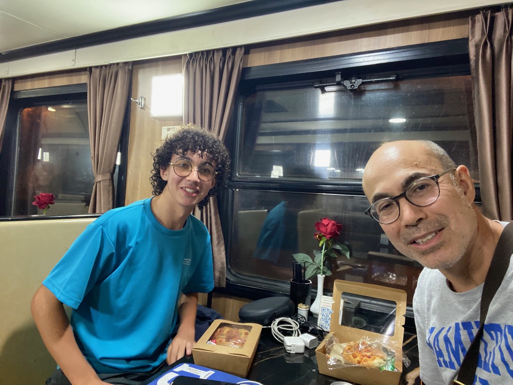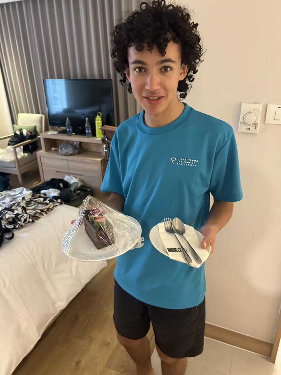 I am posing with Morton’s photographs in the show – sending this picture to Morton and asking, “what the…? Why didn’t you tell us?!”A cake and later a slice of cake was given to Morton on the trip for his 17th birthday