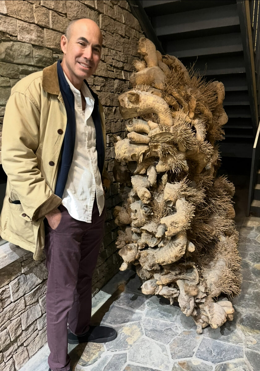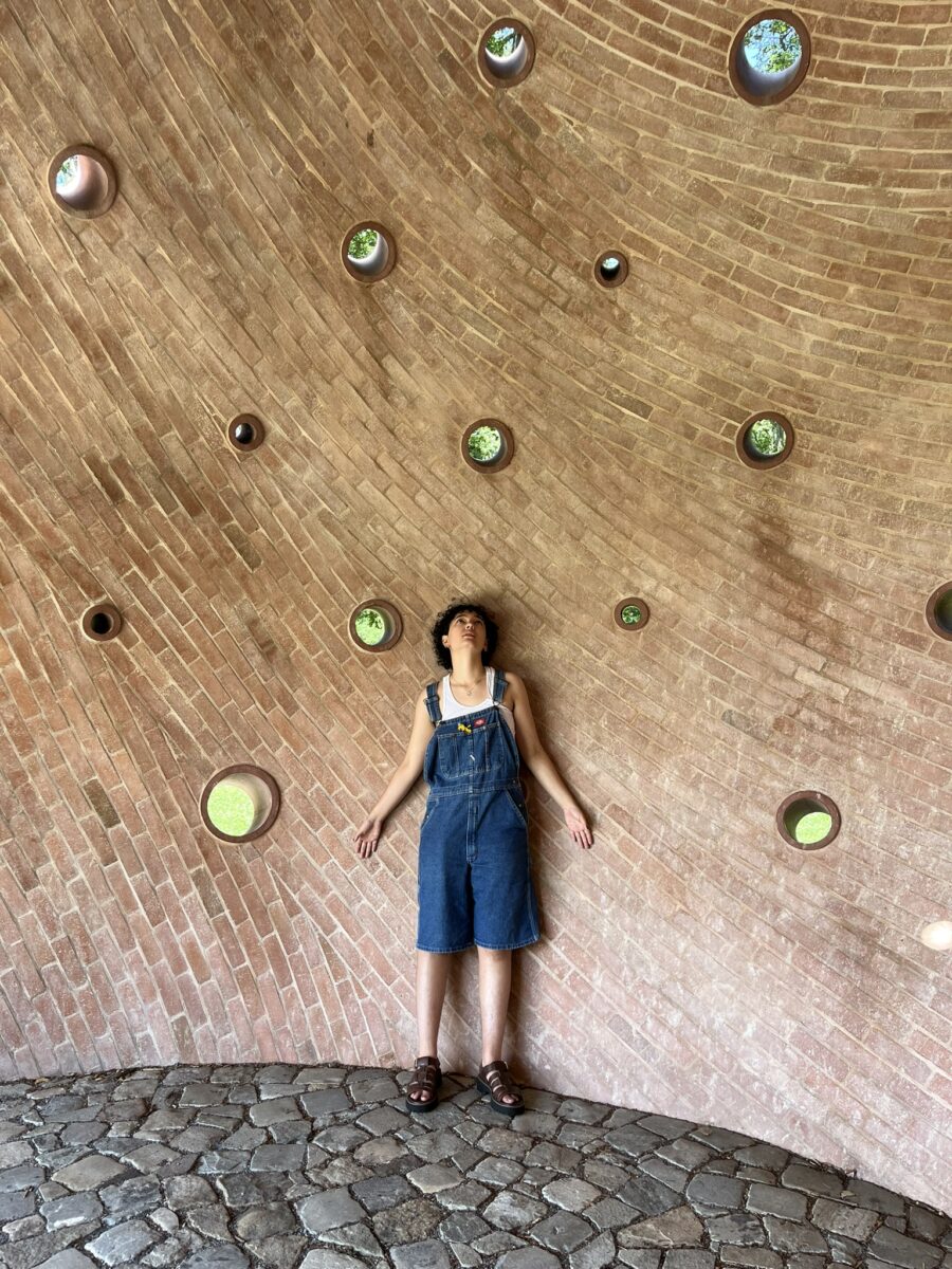 After our drinks we crossed the path to the James Turrel install. We entered a half hour before sunset, as instructed, into a smallish open rectangular room with yoga matts on the floor and woven pillows on the outer edges of the room. We choose two, and lied down, looking at the rectangular opening in the ceiling out to the sky. The room was dimly lit and the lights would slighly alter color. Looking at the ceiling as dusk fell, with the interior lights changing color slightly, our eyes perceive the sky as crazy intense and different colors depending on the interior light. It was mind blowing! It felt like a trick but every once in a while a bird would fly across the sky – stunning us into the realization that we were actually looking at the sky.