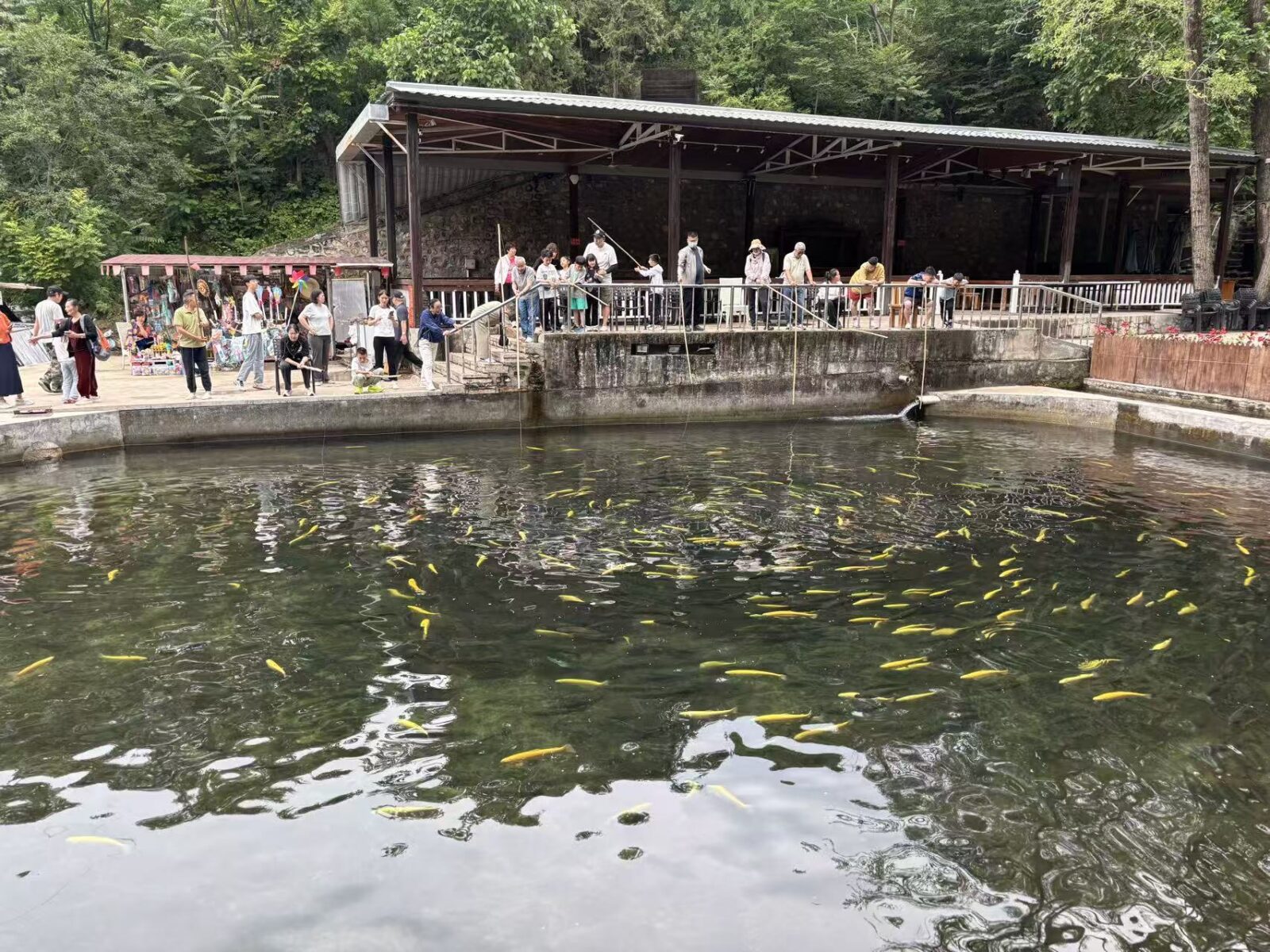 The swimming hole was lovely, but as we had been warned – full of Chinese tourists. At first it seemed terrible – a crazy large crowd of Chinese tourists was all we could see, but then we realized, they all stayed in one area – not entering too far – and almost none of them went into the water. There was a platform for jumping off of. All the Chinese tourists waited around it with their cameras ready – waiting for someone to climb up and jump off- which on an occasion someone did – greeted by video taping and cheers.