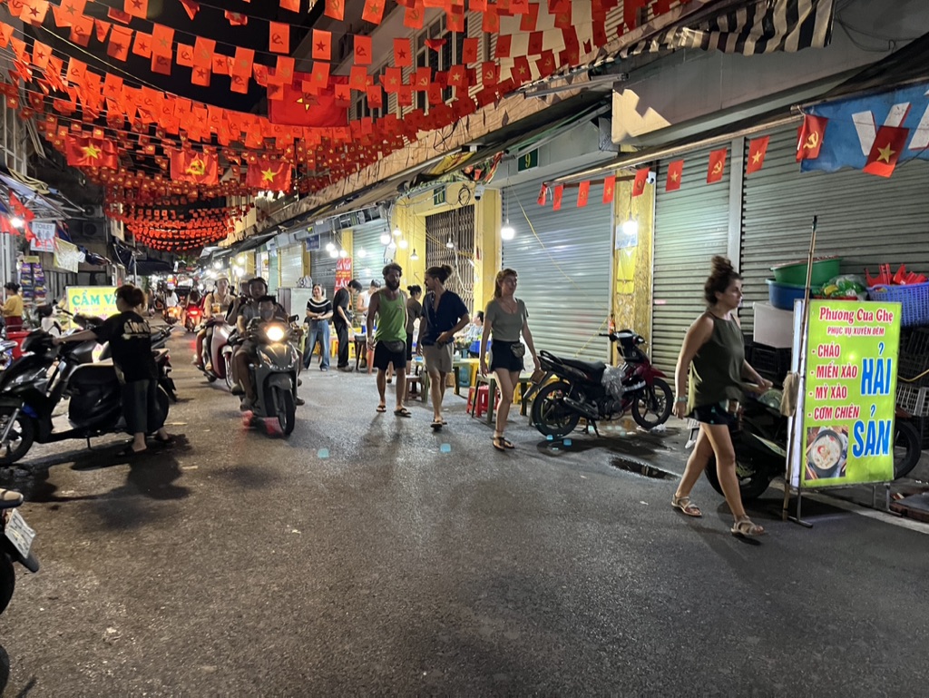 Getting back to the hotel in the dark on scooters, between the pothole filled roads and the crazy drivers, didn’t feel that safe, and was exhausting, so we weren’t too excited to head back in for dinner. Dan found online a highly rated outdoor food court type of place near the hotel, so we decided to go there. Ended up the ratings may have been bought. There seemed to be only one booth in the “food court” that was actually functioning – and we seemed to be their only real customer. The food ended up being not bad and the owner showed up, told us to get the steak and all about his plans for the place. He walked around with a microphone, put on loud Christmas music, and on occasion spoke into the microphone (maybe to his couple friends who were also there).