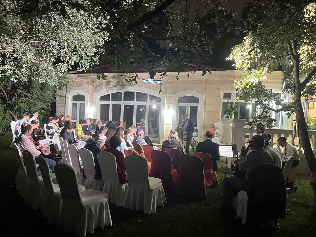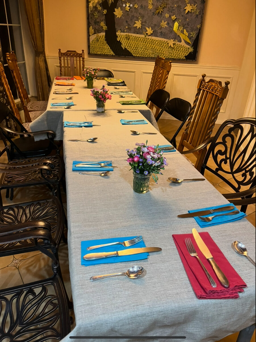 The following weekend we invited some friends over for a long over due dinner. It was a lovely evening with a great mix of interesting people. The weather cooled just enough that we sat outside for drink and hors d’oeuvres. One of our guests is Ukrainian. The Ukrainian ambassador had visited the school the day prior and given Dan a lovely candle for peace, so with our guest we lit it.