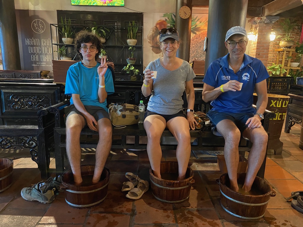 OMG! I can’t believe I forgot to mention this in the last post. When we went out to dinner with friends in Hanoi we ordered spring rolls – the kind you put in water and they soften and you wrap around fresh vegetables and shrimp. This is a Vietnamese dish. We ordered it and the waiter came and is showing us how to assemble the – she brought us wraps in the package – which seemed very strange. Then she assembles it without putting it in the water – so it’s breaking apart. I was thinking, “maybe this is a different kind of wrap”, but then it’s all breaking apart as she’s trying to wrap this crispy wrap and then she hands it to our friend who takes a bite and thinks it’s very weird. Then I ask her to bring us some bowls of water – which of course fixed the problem. But how can she not know that the wraps need to be soaked first -both because she works at a restaurant where they serve this food and because it’s a Vietnamese dish and we’re in Vietnam. SO STRANGE!!