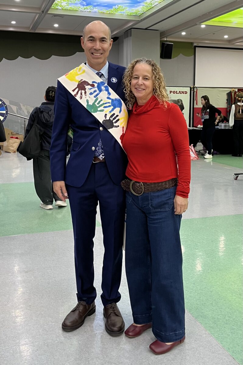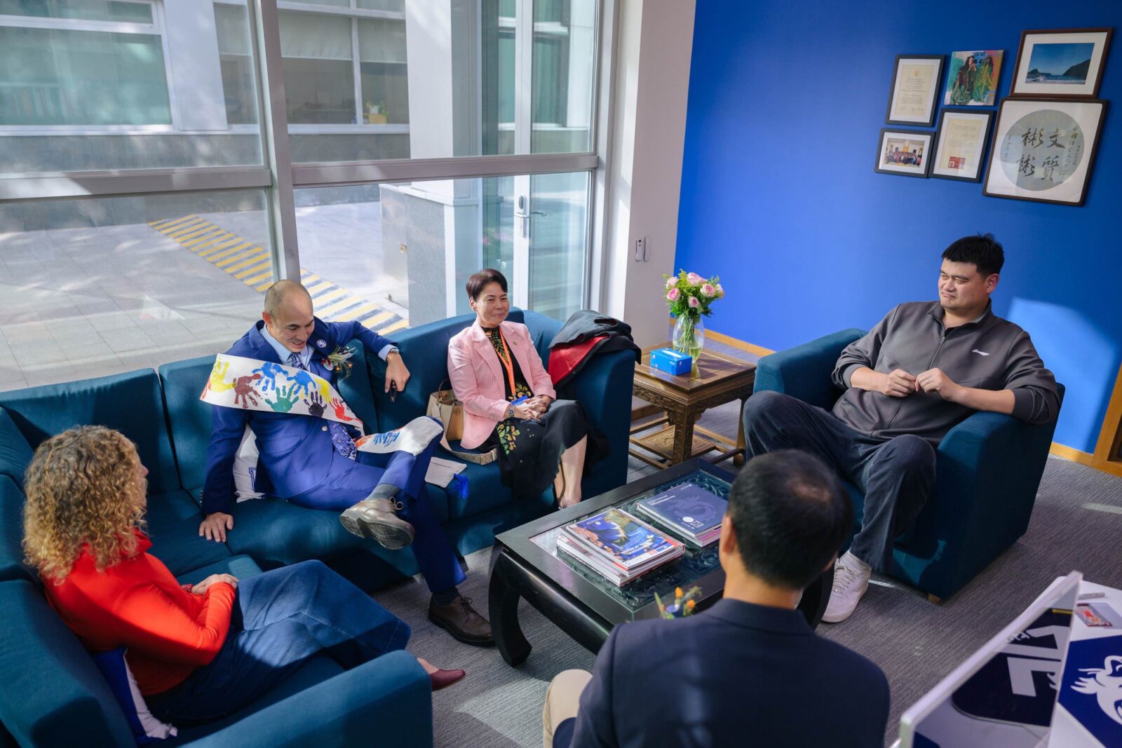 For whatever reason, ISB planned their annual International Day to be scheduled on October 31st. Everyone dresses up in their home country’s traditional clothes, there is a parade around the track, and parents set up booths representing their countries – presenting information and often serving samplings of their food – among other activities. This year Yao Ming and the Ambassador of Guyana were guest hosts of this event – leading the parade, saying some words, and hitting the gong which officially starts International Day. We spent some time chatting with them before the parade, which was lovely and later Yao Ming held an assembly in which he just answered everyone’s questions. Yao Ming is like no star in the US as he is the first and really only star who made it outside of China. – Maybe Jackie Chan is the one other – but Yao Ming is so much more noticeable than Jackie Chan that his experience is so much more extreme. Yao Ming has been out of the NBA for a couple decades but he can’t go anywhere in China without causing an avalanche of enthusiastic followers.