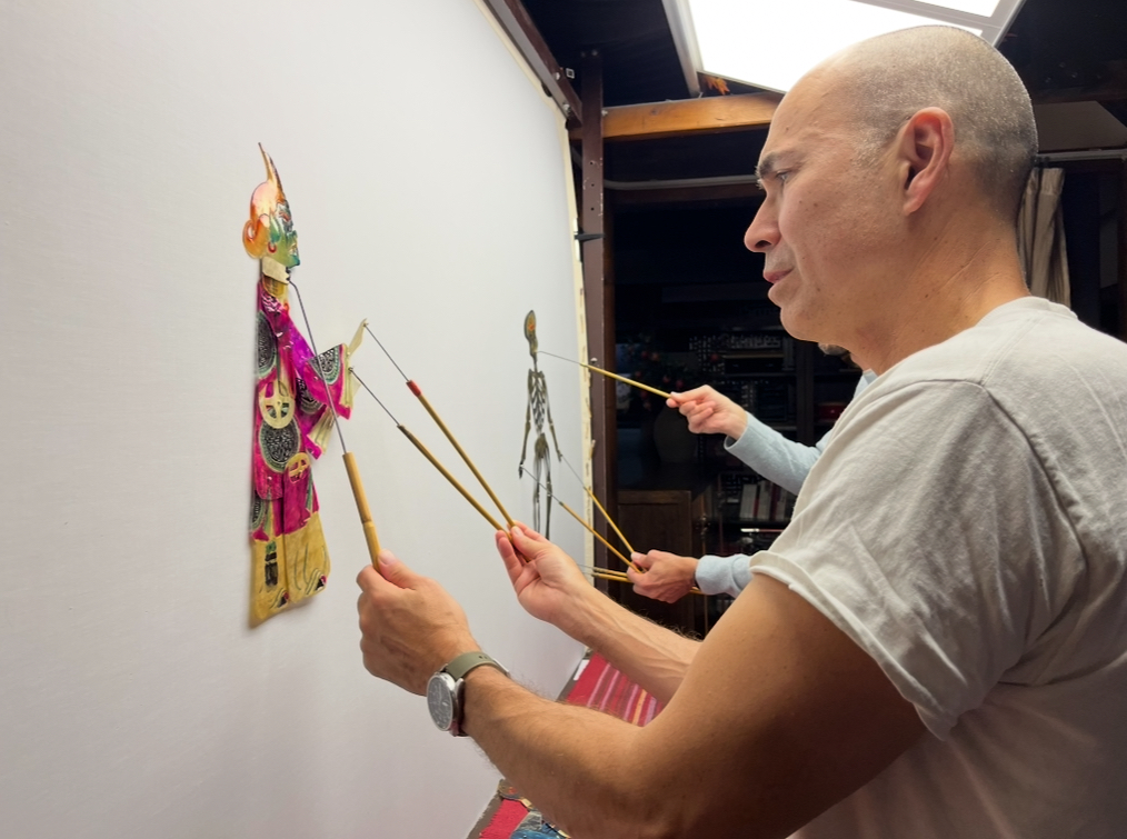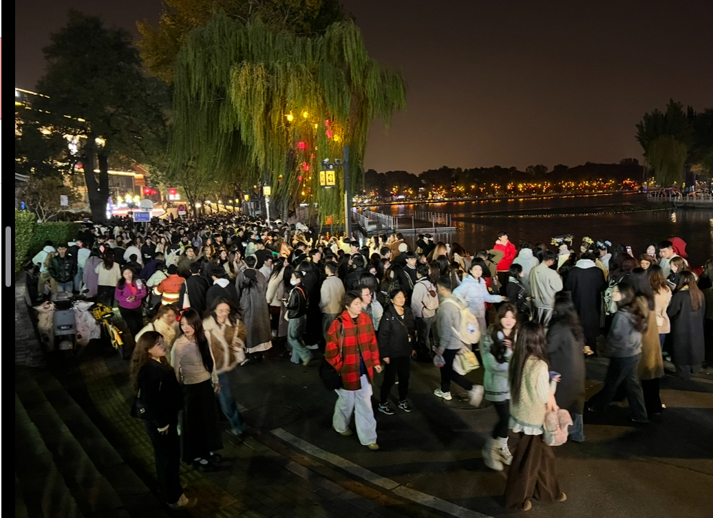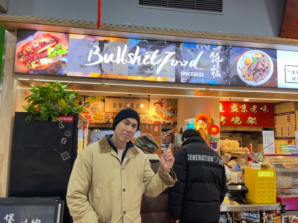 Dan being very contemplative in our hotel’s courtyardWalking the hutong streets in the perfect fall weatherWe stopped by one of the Solana malls – there are a number of them. The architecture is crazy.Saw this store in the mall. Hard to understand how I could have mistaken it for Polo Ralph Lauren when it’s obviously Polo Walk!Wandered through a food court and saw this booth. Did they understand the English when they named it?Went and saw a shadow puppet show – and then were able to try out the puppets. It was so beautiful!Afterwards we thought to wander along the river downtown but a few million other people had the same idea. China’s so crazy crowded!