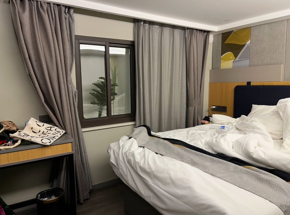 A few days later I flew down for a very quick trip to Shanghai to attend my friend Wang Xin’s big art opening. I asked her to suggest a convenient hotel for me to stay in. She sent me a link in Chinese on a Chinese app. I was surprised by how cheap the room was and it looked pretty nice. When I arrived – the room was an interior room – no windows! It just had a fake one!